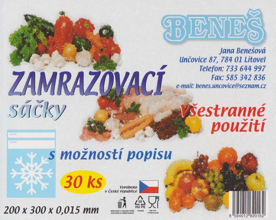 | Zamrazovací sáček velikost 200 x 300 x 0,015 mm |