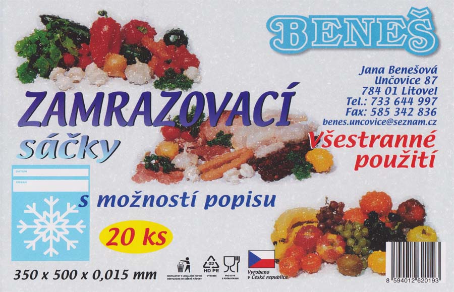 | Zamrazovací sáček velikost 350 x 500 x 0,015 mm |